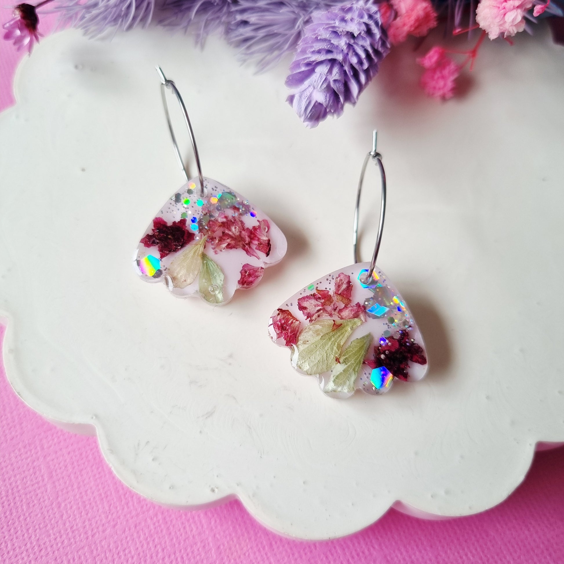 A stunning earring made with dried manuka picked right here on the farm. Immersed in resin with flecks of silver glitter and backed with a soft pink. They are just a wee bit special 🩷