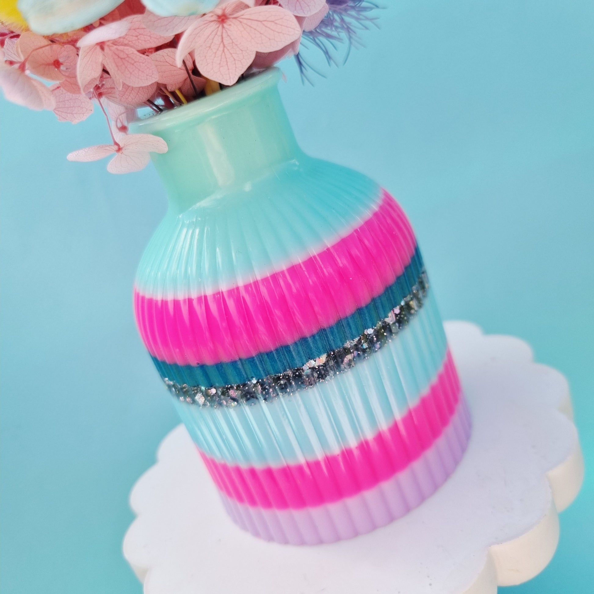 The height of the vase is 10cm and the inner diameter is approx 2.2cm. Full length with posy ranges from 22-27cm depending on posy.Â