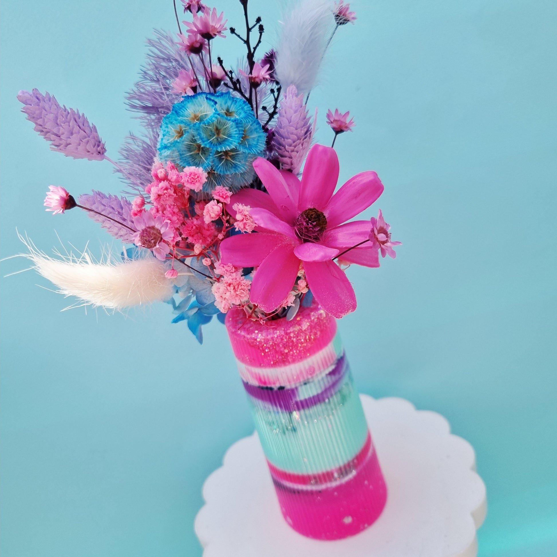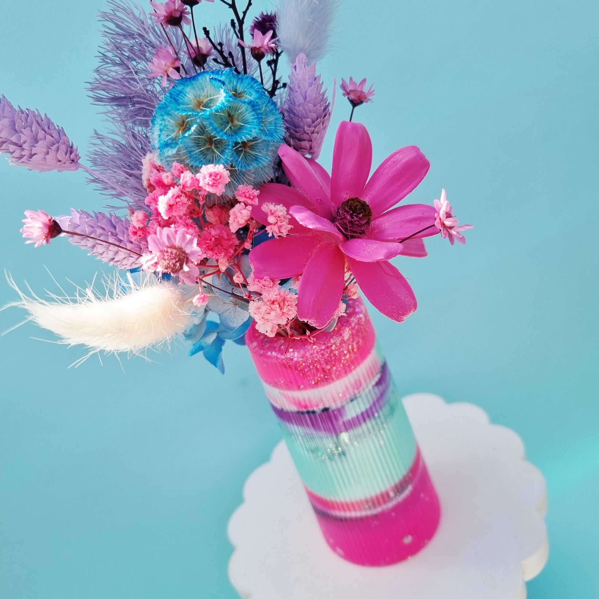 The height of the vase is 10cm and the inner diameter is approx 2.2cm. Full length with posy ranges from 22-27cm depending on posy.