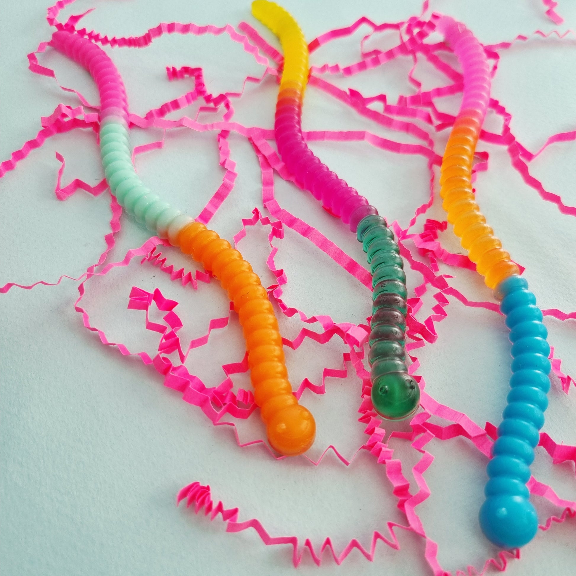 You will receive a random set of 3 XL worms, not necessarily the same colours pictured.
